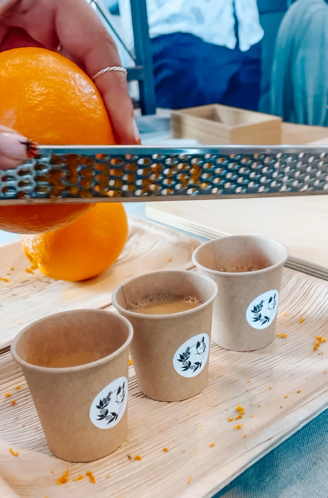 Add oat milk, powdered cream cheese, cinnamon and maple syrup to a mixing bowl and whisk until incorporated. Add your preferred amount to a hot cup of coffee & add orange zest on top. Store in an airtight container, keep refrigerated and drink within a week. Enjoy!! :)