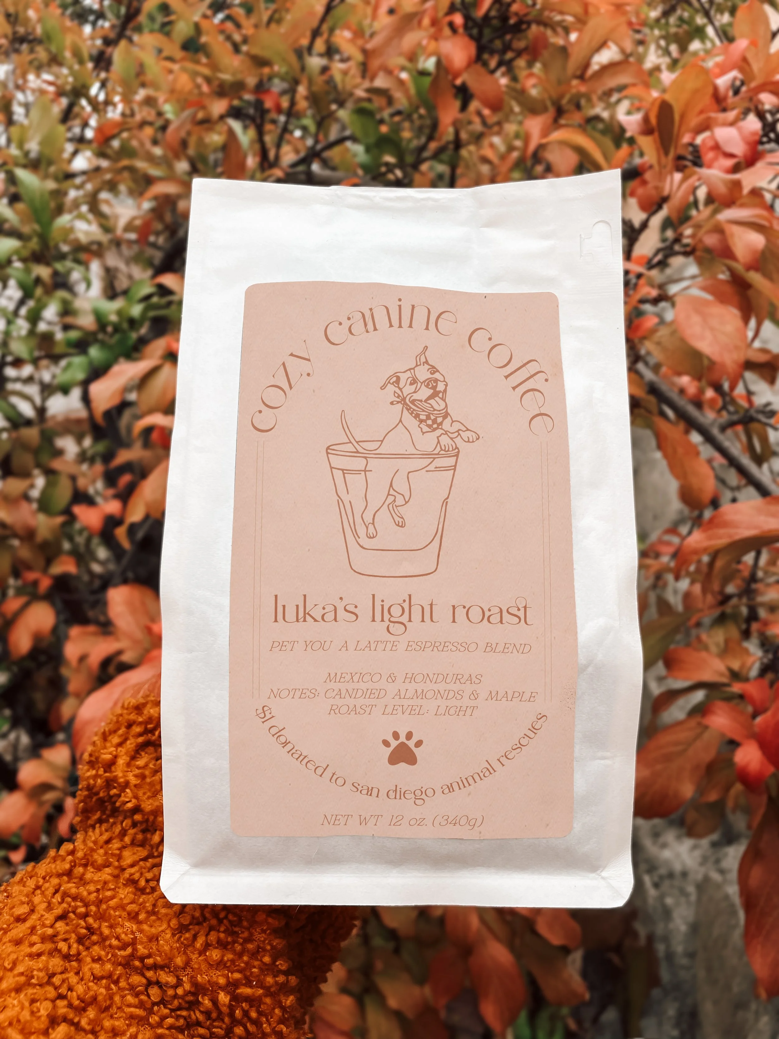 Luka’s Light Roast Espresso Blend is for those who need as much energy as Pet You A Latte’s puppy, Luka. Made up of 50% Washed Mexico & 50% Washed Honduras, this light roast has tasting notes of candied almonds and maple.
